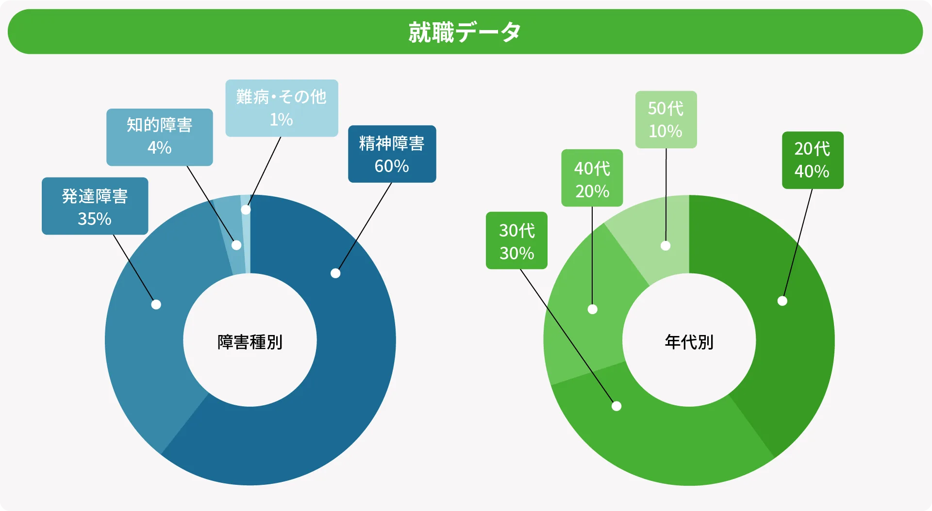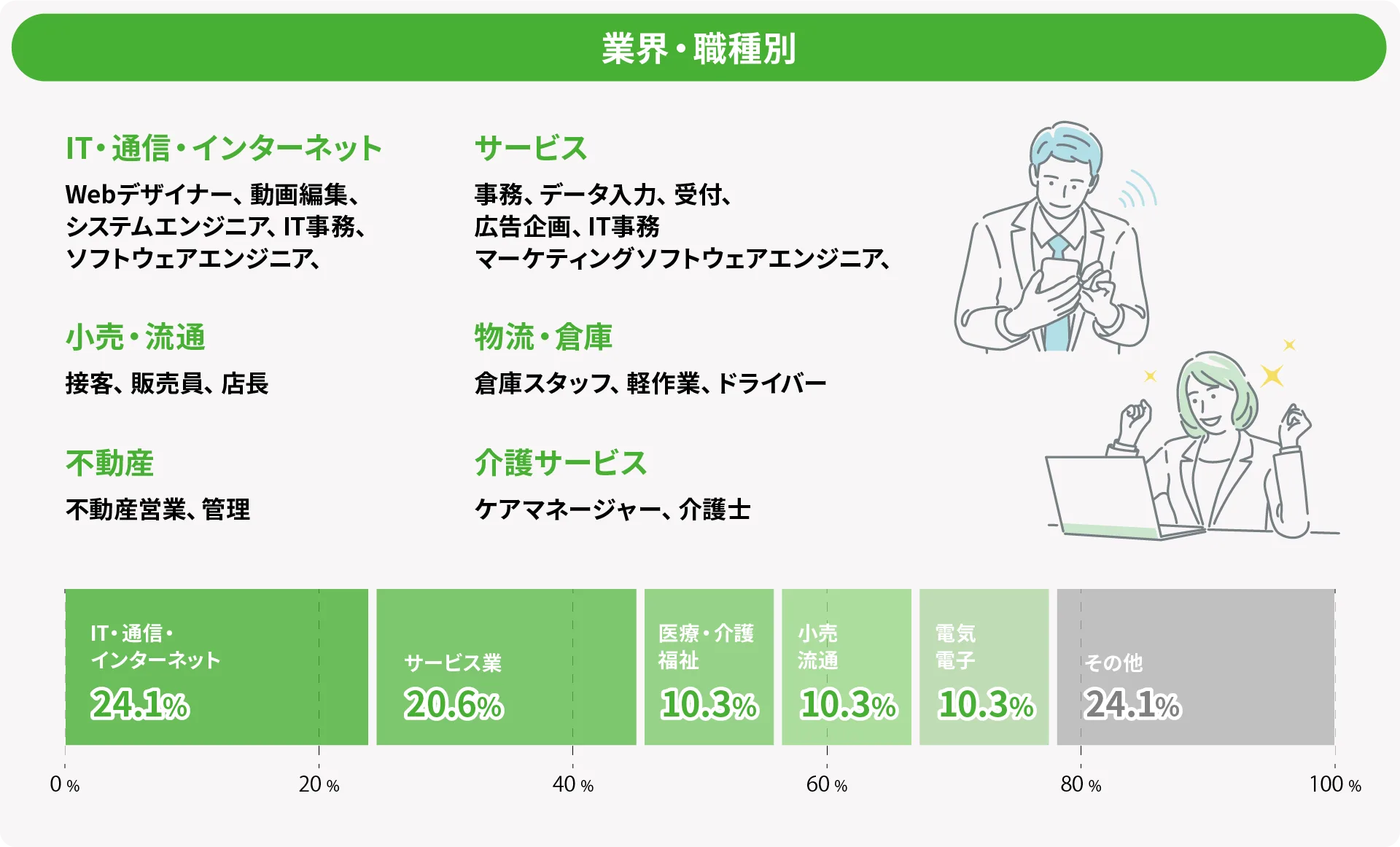 ひとりひとりに寄り添った手厚い個別支援を通して、IT業界、事務職、農園等と幅広く就職者が生まれています。
