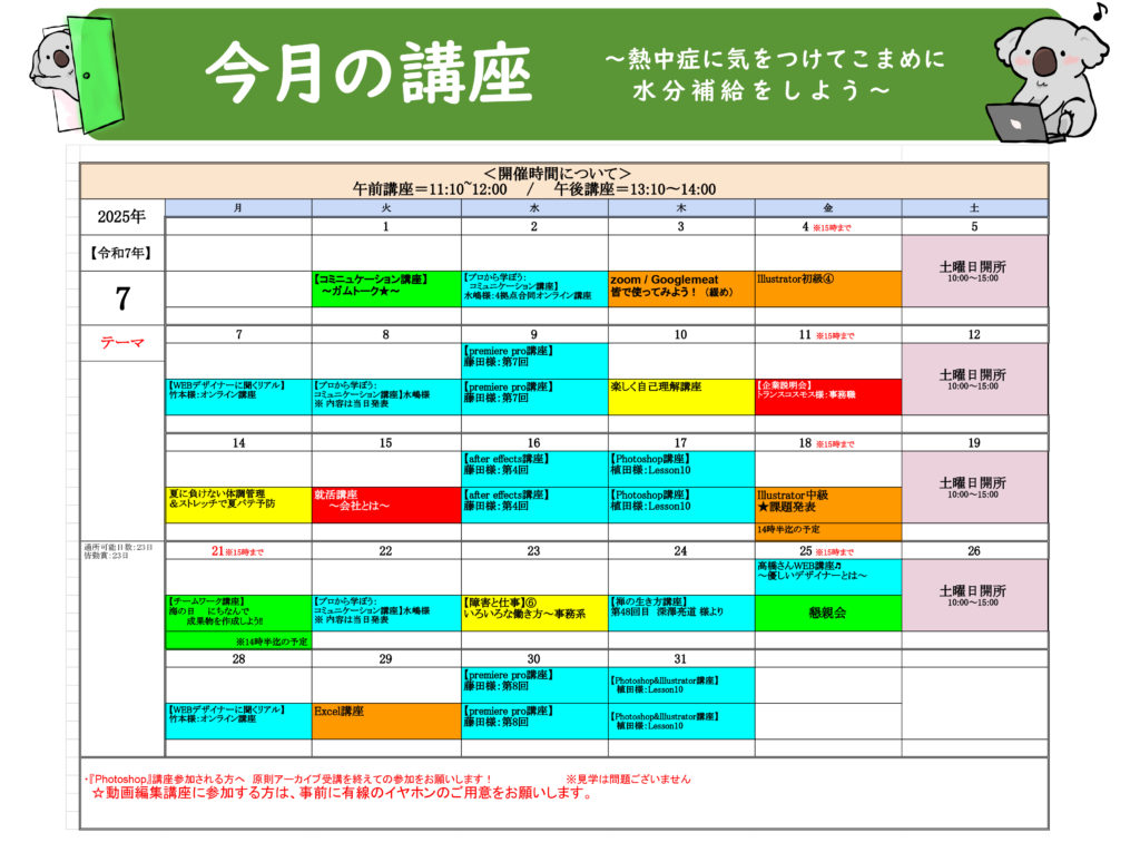 新着情報2025年7月の講座(池袋) Tweet Share Hatena Pocket RSS feedly Pin it熱中症に気をつけてこまめに水分補給をしよう!最近暑くなってきましたね外を歩いていると、いつの間にかフラフラすることありませんか?訓練を効率よく進めるには体調管理が不可欠!熱中症に負けないよう、こまめな水分補給を意識しましょう(^_-)-☆ 感情のコントロールが難しい~高次脳機能障害の誤解と理解のヒント~前の記事 2025年7月の講座(板橋)次の記事